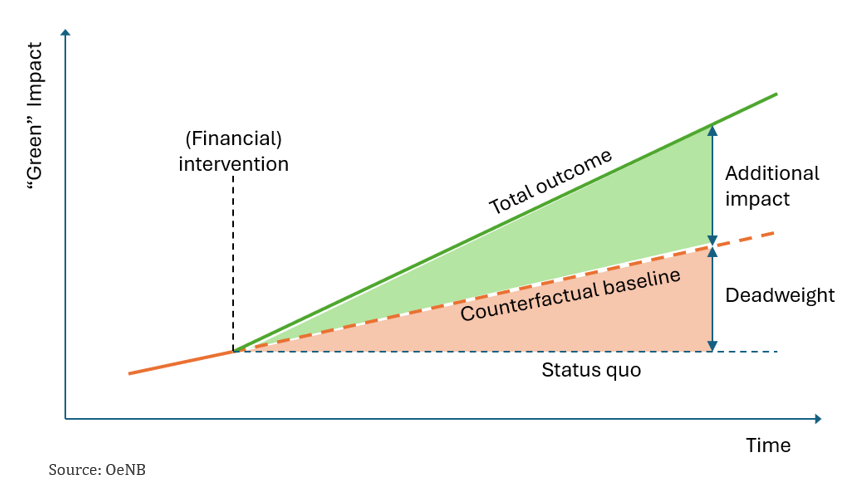 Additionality asks whether financial interventions cause changes that would not have occurred otherwise. It serves as a litmus test for the credibility and impact of green or sustainable finance. Due to greenwashing, green bashing, and green hushing, this concept is more important than ever. Nonetheless, the concept of additionality is often overlooked in impact assessments and in the labelling of green investments. There are several reasons for this: (1) Measuring outcomes and establishing counterfactuals is difficult. (2) Financial institutions also avoid complexity that could hinder capital flows. (3) The slogan “doing well by doing good” misleadingly suggests that impactful green investments are easily feasible at market rates with normal risks. (4) Overemphasizing intentionality risks reinforcing the “warm glow” effect – feeling good with little real impact. (5) Amid lobbying pressure regulators shy away from strictly requiring impact investors to prove that their funds make a difference. This note aims to stimulate discussion about the need to ensure that green finance delivers a real and measurable impact on environmental sustainability and allocates scarce resources efficiently. Financial regulators should assess additionality in a structured, evidence-based, and context-sensitive manner. To promote transparency, they should incorporate this concept into their monitoring framework. Fiscal policy can increase the return or decrease the risk of green investments. For example, it can offer tax credits or loan guarantees to mobilize additional private capital for the low-carbon transition.