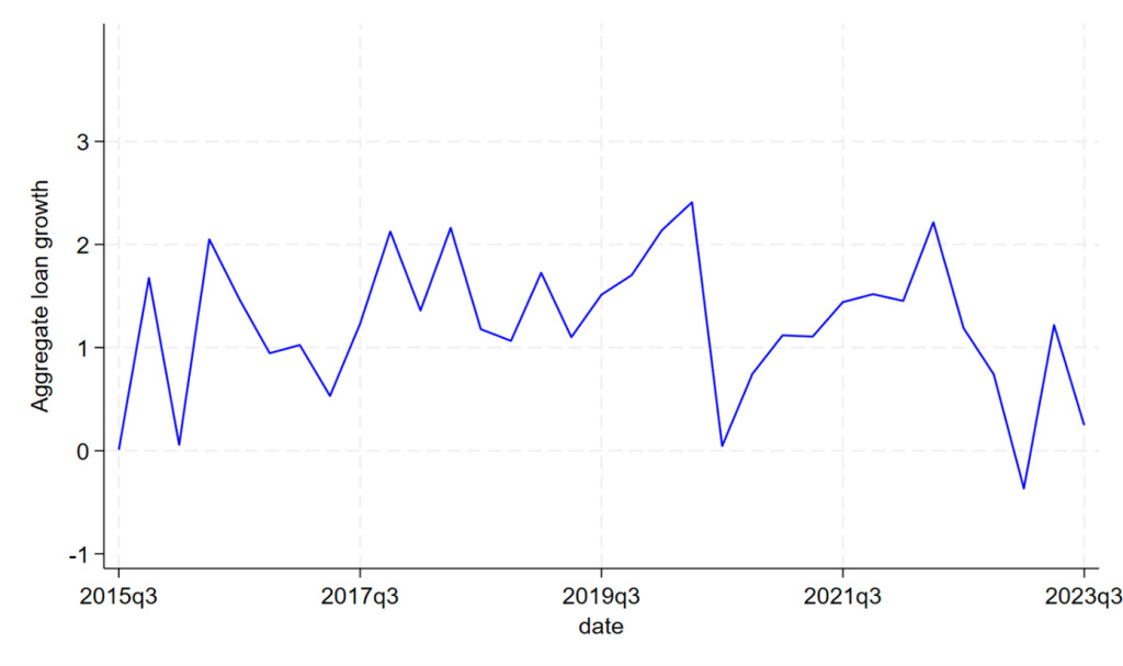 Note: Loans to households and non-financial corporations granted by French banks (in %, quarterly growth).