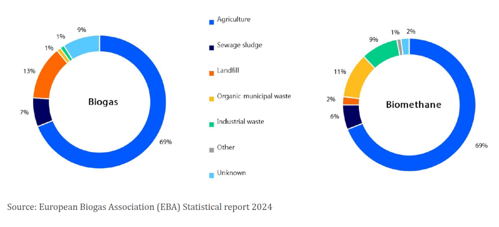 Figure 3. Ratio of plants using different feedstocks for biogas and biomethane production in Europe