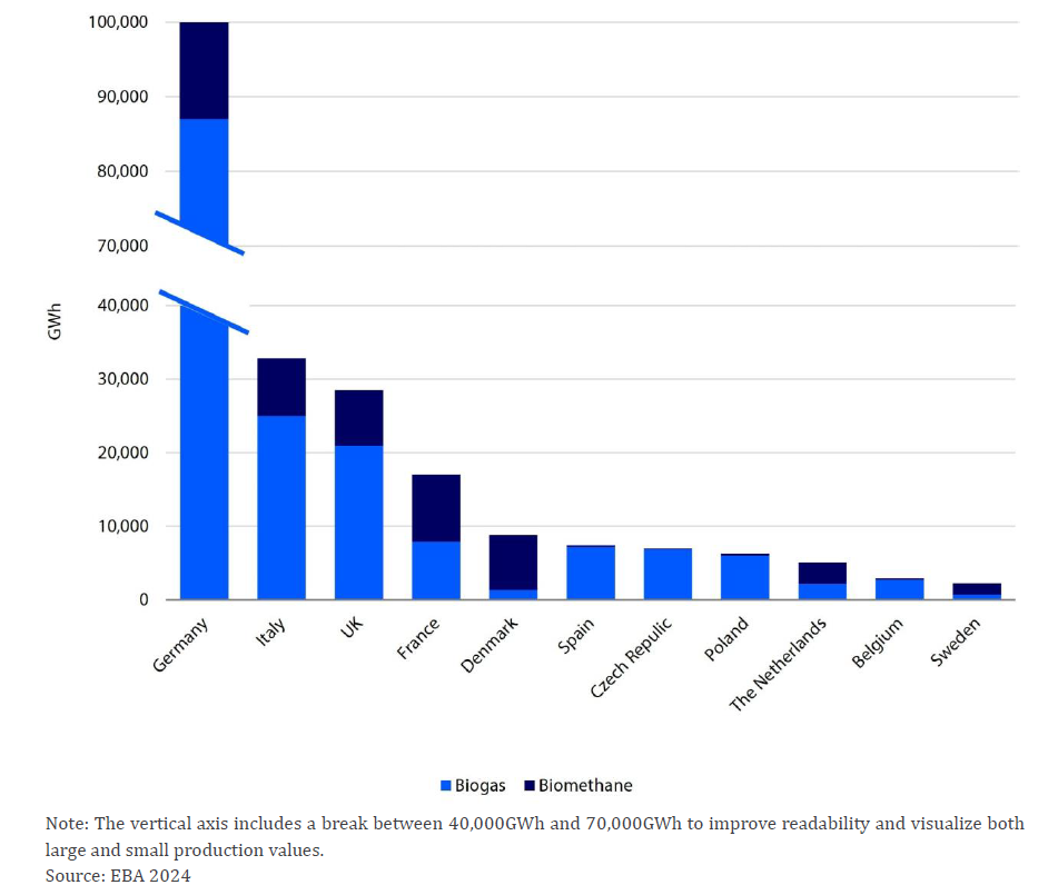 Figure 6. Combined biogas and biomethane production of the main producing countries
