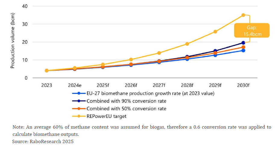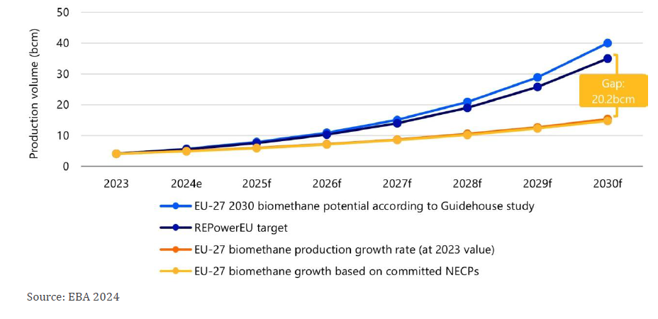 Production is rising, and the value chain is maturing, but the gap to the REPowerEU target of 35bcm by 2030 remains wide. Scaling up will require more than just technological scaling and supportive policies – it also hinges on market design, infrastructure readiness, feedstock availability, and investment certainty. Robust demand signals (like the Dutch blending obligation), streamlined permitting, and coordinated efforts across supply chains – from farmers to grid operators – will determine whether biomethane can reach its full potential.