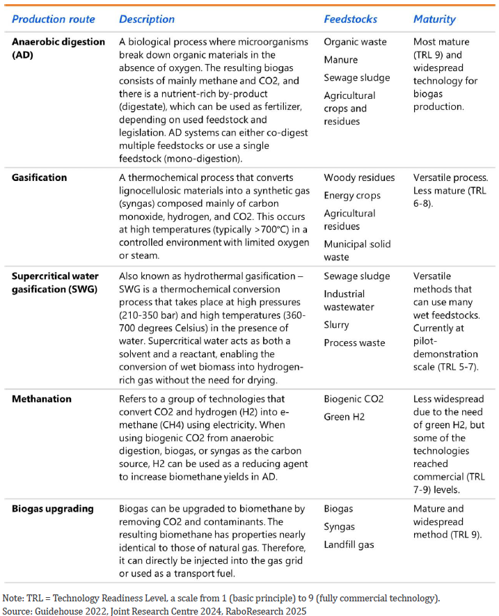 Table 1. Overview of the different biogas production pathways and their characteristics