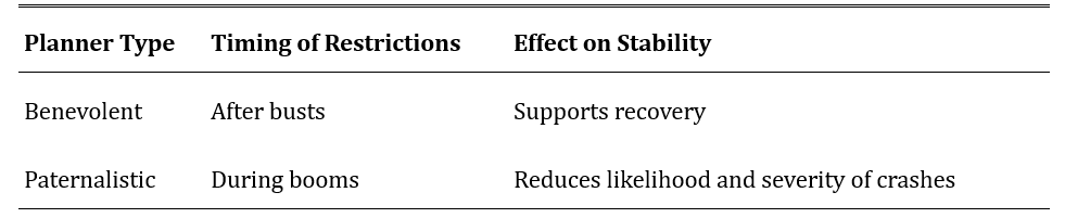 Both intervention types raise long-run welfare by mitigating financial amplification. However, paternalistic regulation typically achieves a higher average consumption level combined with lower consumption volatility.