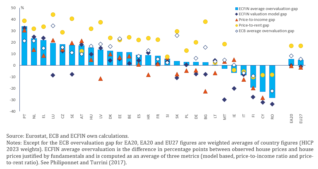 Graph 6. Estimates of over-valuation according to the Commission and ECB methodologies 2024
