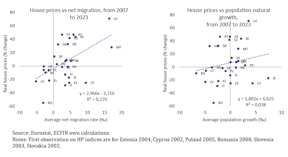 Graph 8. House prices vs selected population indicators in the EU countries, 2007-2023