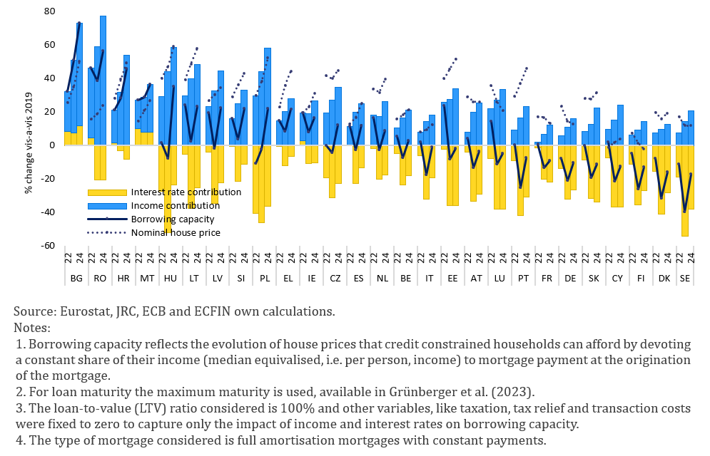 Graph 4. Households’ borrowing capacity and house price changes, % change vis-à-vis 2019