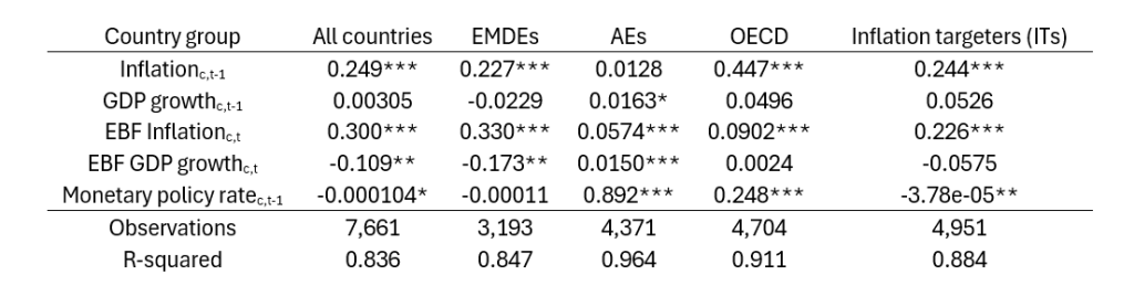 The results show that life experience forecasts for inflation are a relevant input for the Taylor rule of any country group. Furthermore, EBF inflation forecasts are even more relevant than previous inflation in determining monetary policy for several economies, including the samples of all countries, EMDEs and AEs. In the sample of all countries, an increase of 1% in the chair’s experience-based inflation forecast implies a tightening of 30 basis points in the monetary policy rate. The role of experience in monetary policy decisions appears to be more relevant in the lower income economies (EMDEs).