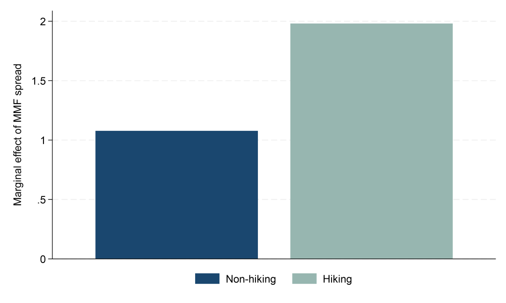 Figure 3. The impact of MMF spreads on growth is higher during hiking cycles (Estimated impact of MMF spreads on MMF growth, by monetary policy cycle)