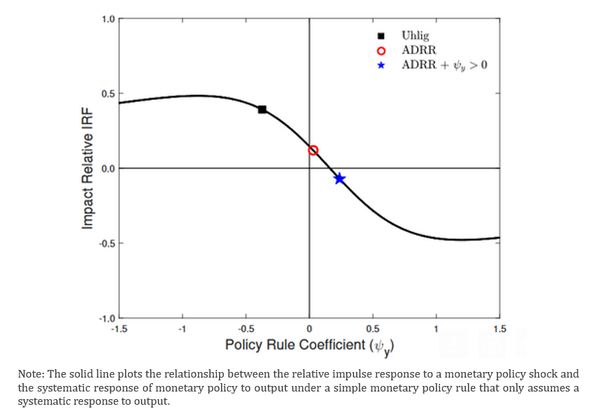 We demonstrate that a simple analytical expression links the impact response of output to a monetary policy shock to the systematic component of the policy rule that regulates the policy response to output fluctuations. Figure 3 illustrates this mapping: a better-disciplined policy rule leads to a more reliable estimate of the real effects of a monetary policy shock.
