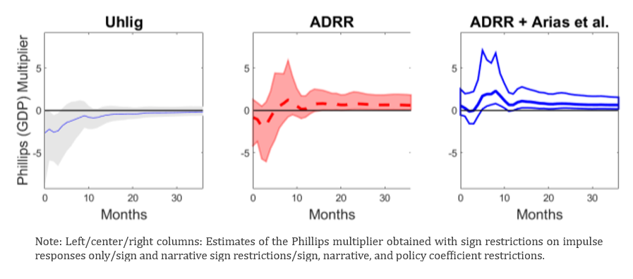Figure 4. Estimates of the Phillips multiplier across three different identification strategies