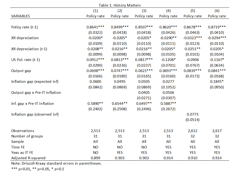 The other tenet is the assumption of no path dependence. The fact that the inflationary past plays such an important role in the interest rate reaction function of a central bank to current inflation gap shocks speaks to the importance of internalizing past events in theoretical models. Central banking in inflation targeting countries is clearly history-dependent, something that has typically been ignored in most models of inflation targeting. So, even though IT works.