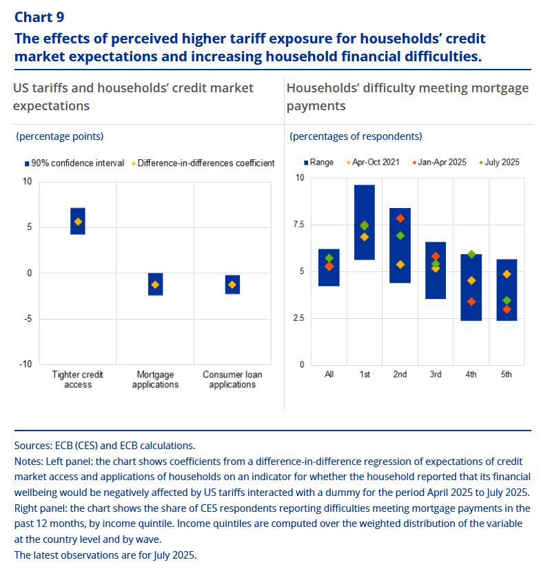 This is also supported by the July 2025 SAFE survey, where firms with supply chain issues report, after controlling for size, country and sector, an 8 per cent and a 9 per cent lower likelihood of expecting improvements in the availability of credit lines and bank loans, respectively, over the next three months compared with firms reporting no supply chain implications from tariffs.