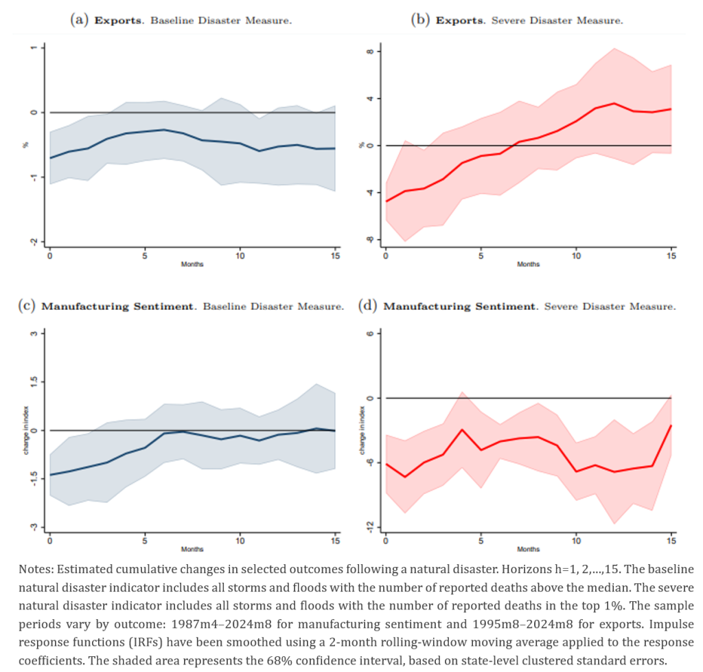 Figure 3. Dynamic Response of Exports and Manufacturing Sentiment to Natural Disasters